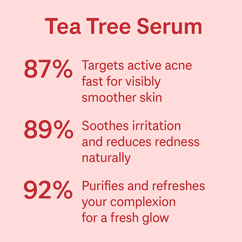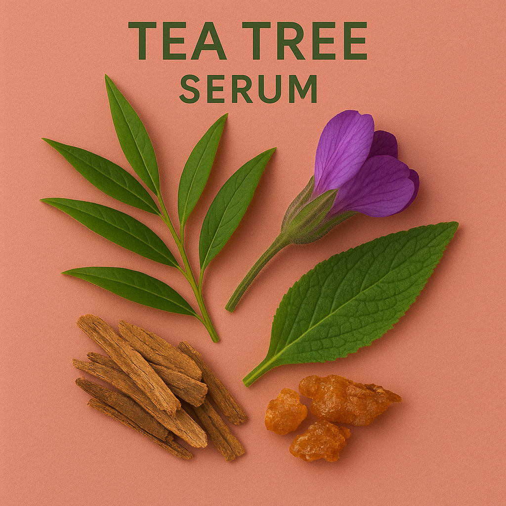 Our Tea Tree Serum targets active breakouts with powerful Australian tea tree oil and willow bark extract. It soothes irritation, fights redness, and purifies your complexion — for calmer, smoother, and visibly clearer skin.